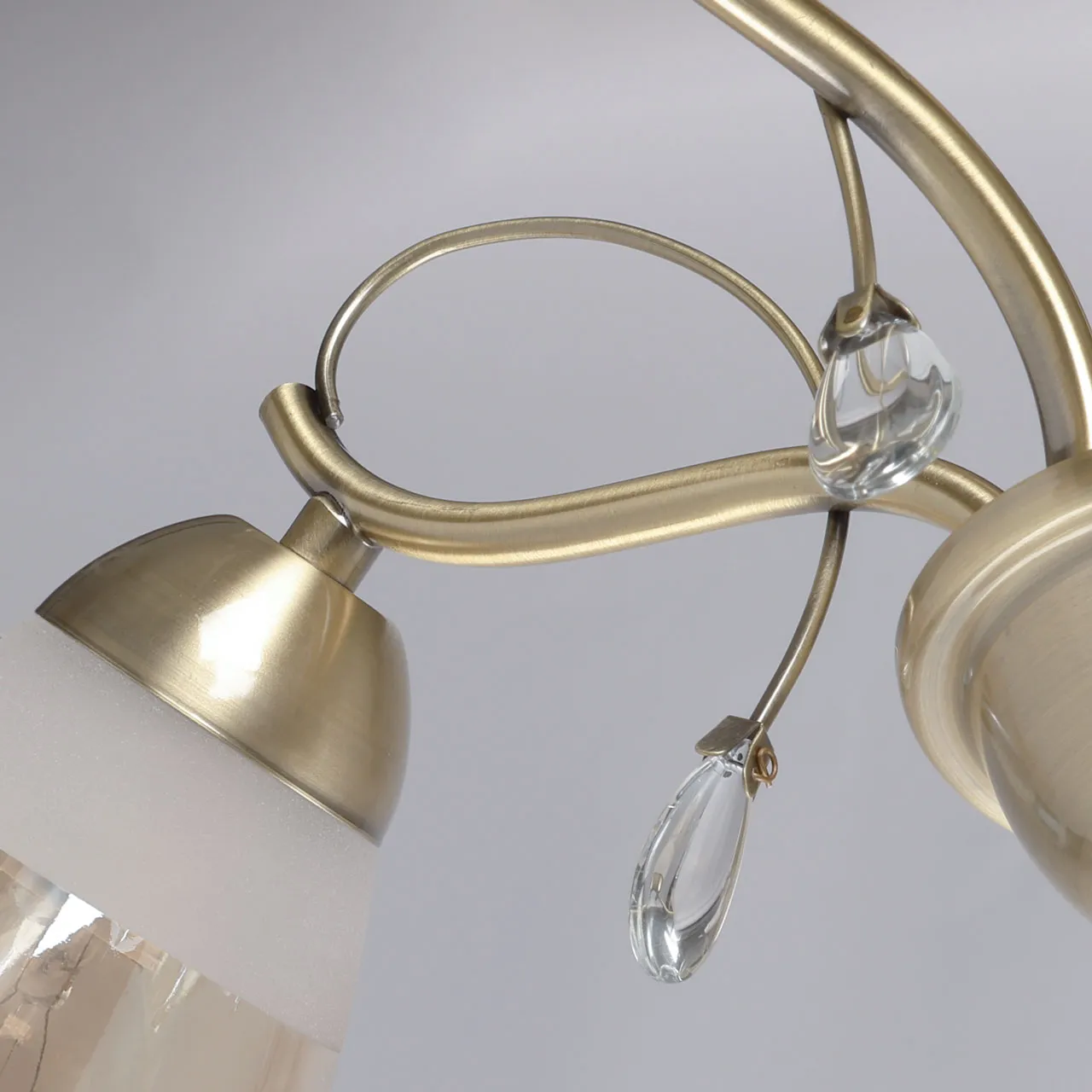 Основание/ металл/ античная бронза Плафон/ стекло/ матовое, шампань Декор/ хрустальное стекло/ про