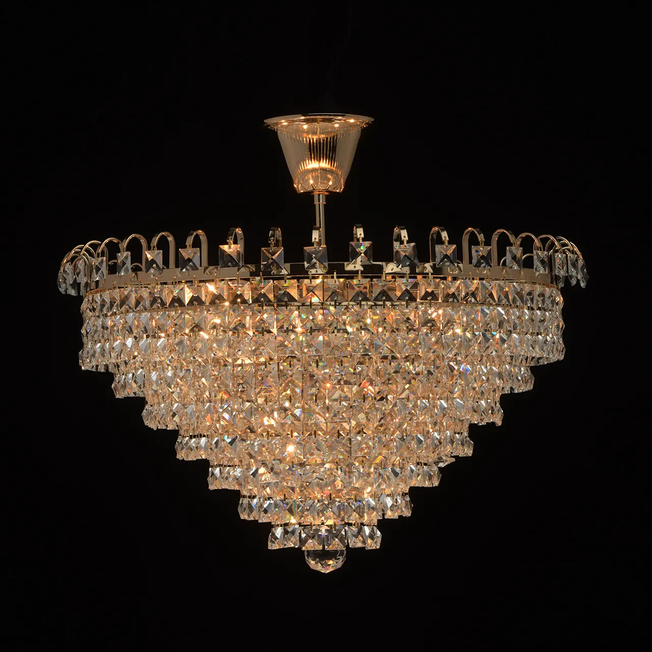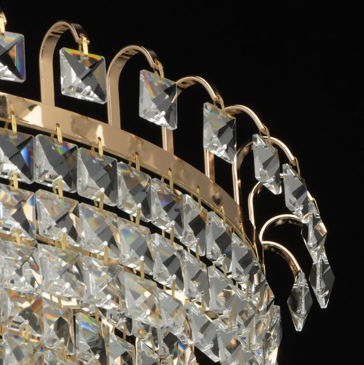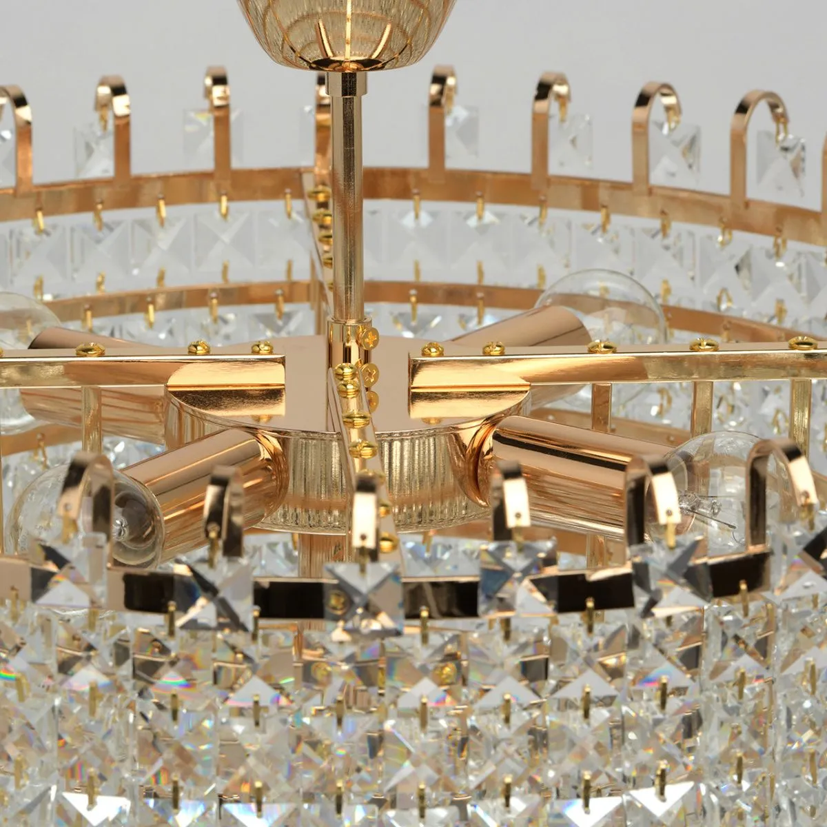 Металлическое основание цвета золота. Декор: хрусталь прозрачный.